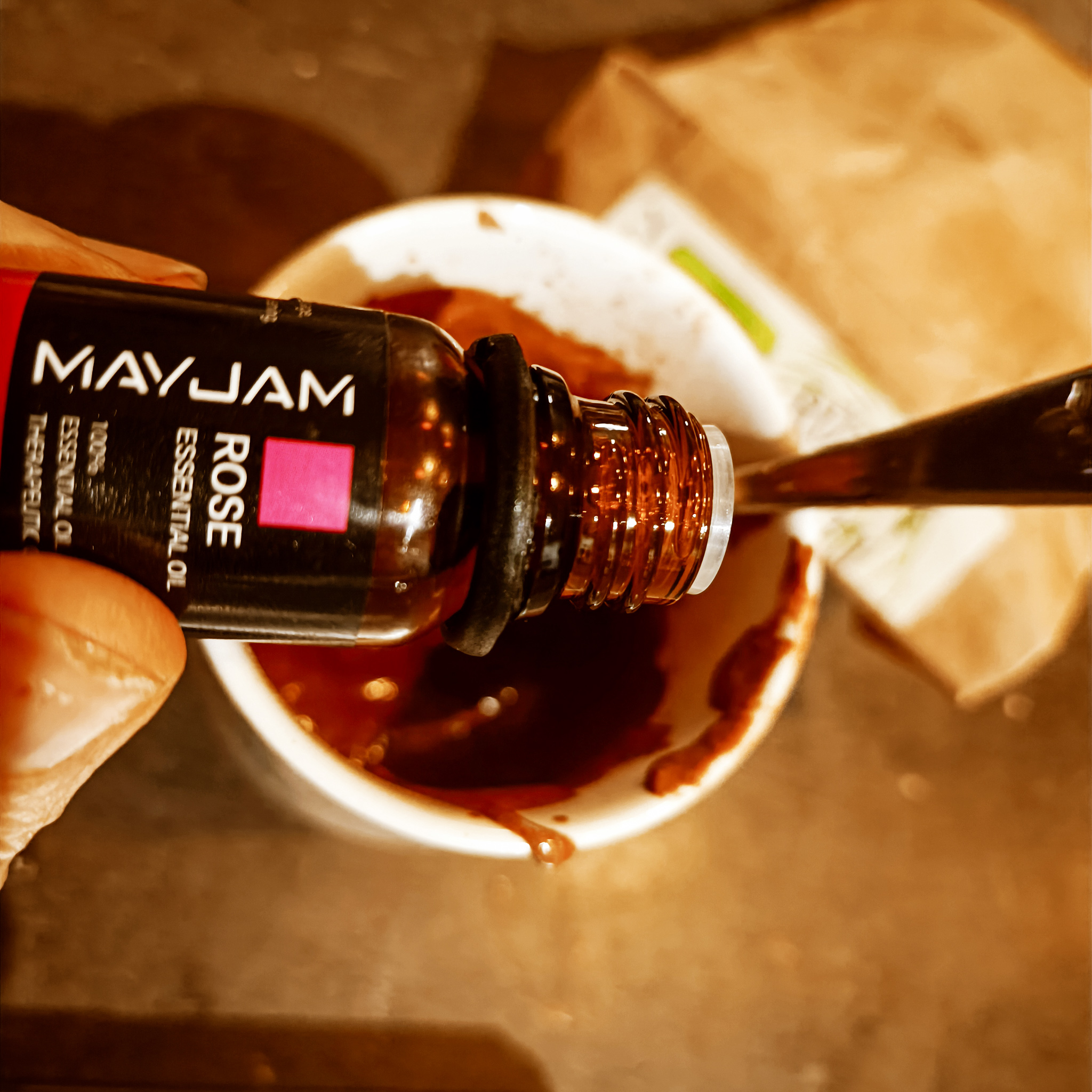 2 kapky esenciálního oleje růže z damašku