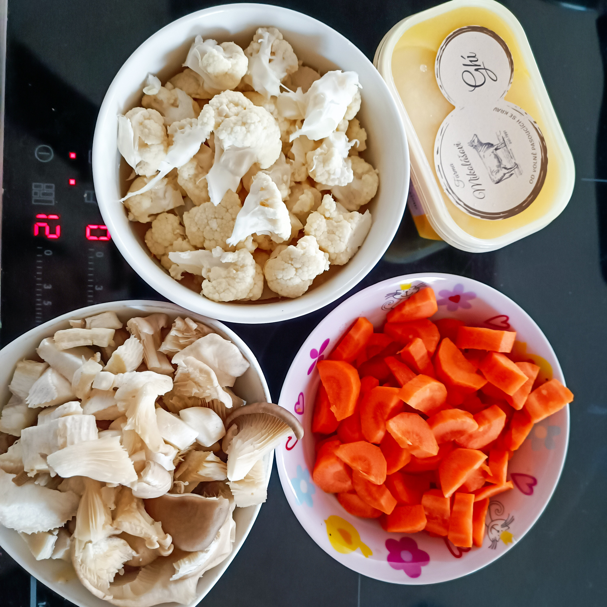 růžičky z malého květáku (nemusí být, já jej použila, protože na mě smutně koukal z lednice)