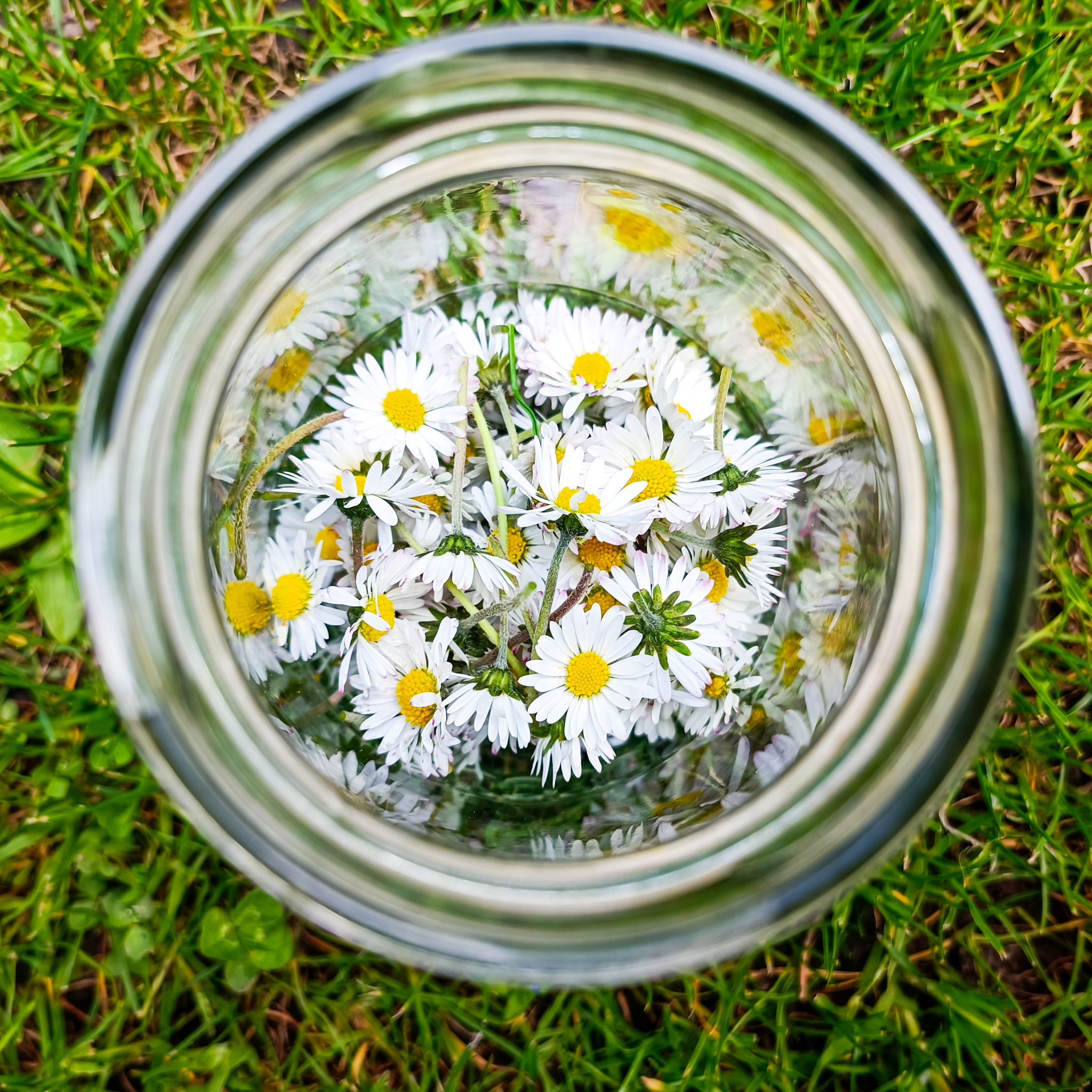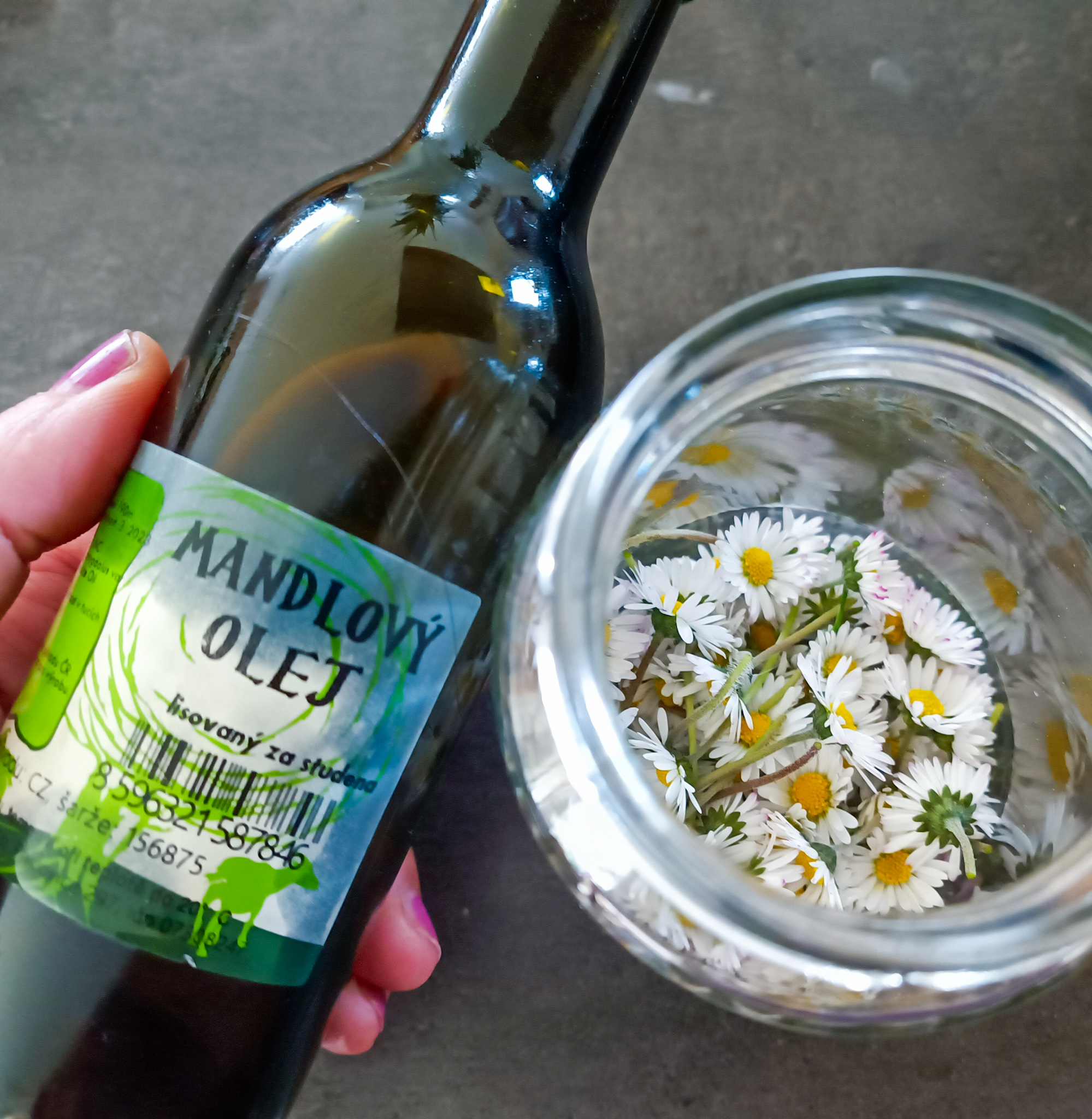 - Ten první je pro trpělivé. Takže jdeme na to. Sedmikrásky sbíráme za suchého, slunečného počasí, nesmí být vlhké. Doporučuje se nechat sedmikrásky den zavadnout, aby macerát nechytil plíseň. Do vyvařené sklenice vložte sedmikrásky a zalijte je mandlovým olejem. Ani kousek sedmikrásky nesmí trčet nad hladinu. Postavte na okno na sluníčko a každý den protřepejte. Nechte macerovat 3 týdny. Sceďte přes plátýnko. Sedmikrásky příliš nemačkejte, pokud z nich vyteče moc vody, finální macerát vám může zplesnivět. Přidejte 3 kapky vitamínu E, který sérum zároveň konzervuje. Můžete přidat váš oblíbený esenciální olej nebo jeden z olejů, které jsem navrhla a které pomáhají vypínat pokožku. Na 3 séra stačí 15 kapek.