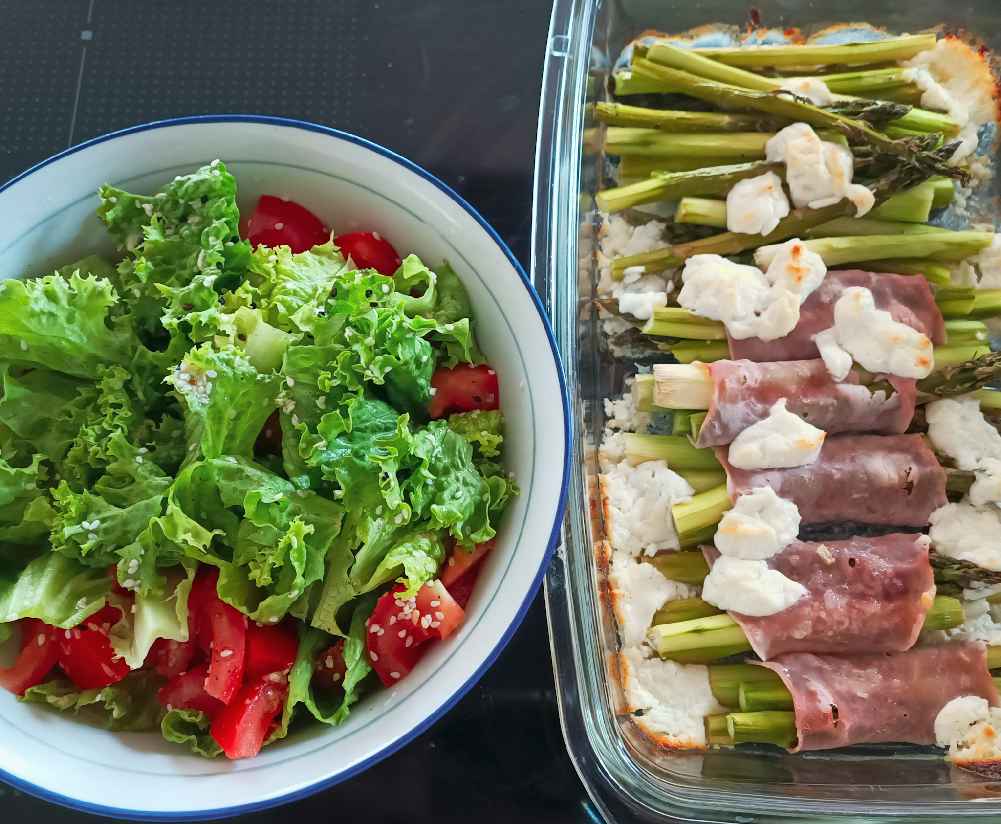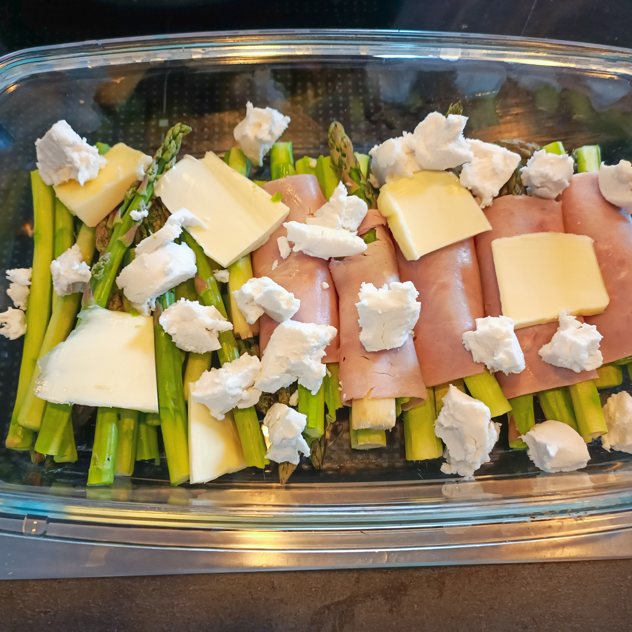Chřest zapečený se šunkou a kozím sýrem