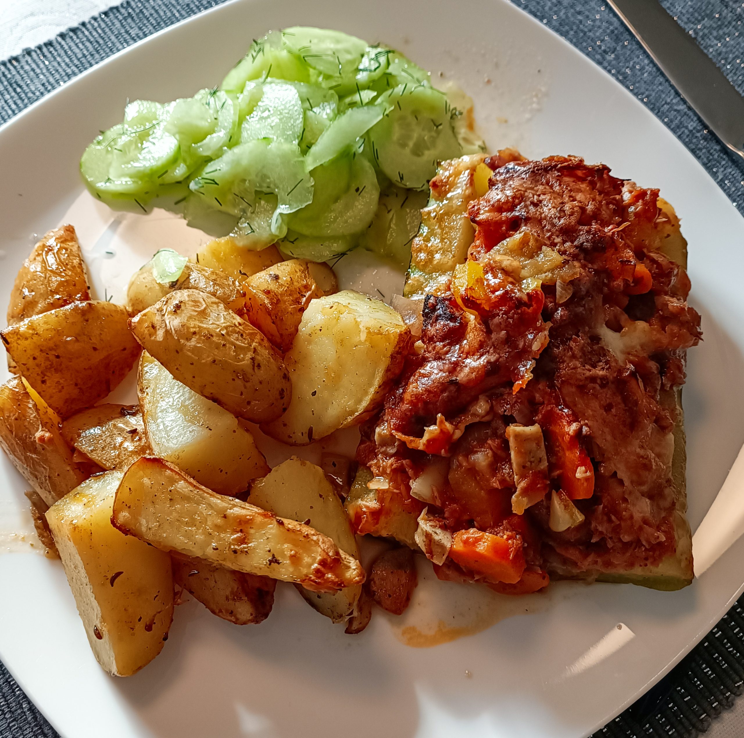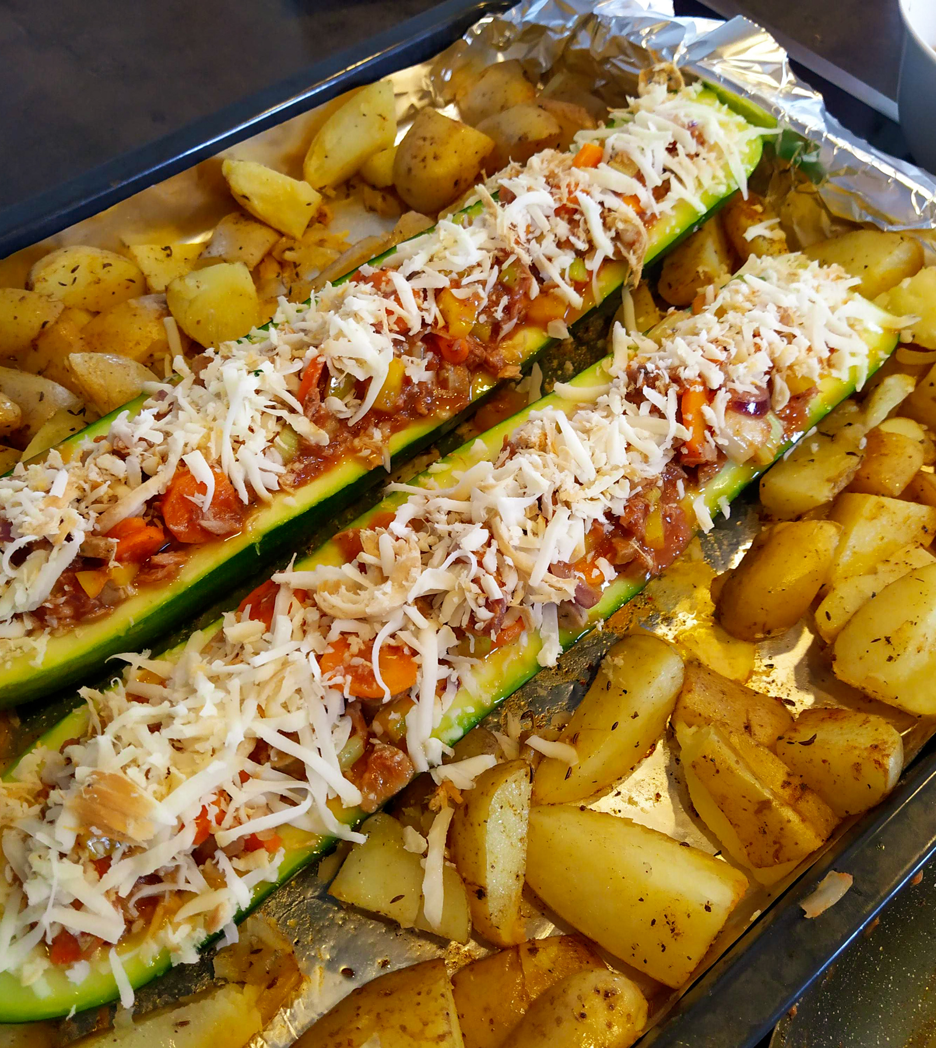 U nás na vesnici nastalo období roku, kdy se pozdrav Dobrý den proměnil na Nechcete cuketu? Takže pokud jste dostali od sousedky, od kolegyně nebo od maminky středně velkou nebo větší cuketu, mohu jen konstatovat, že je skvělá na plnění a pečení. Mám pro vás jednoduchý recept, kde zkombinujete ingredience, které určitě naleznete v lednici.