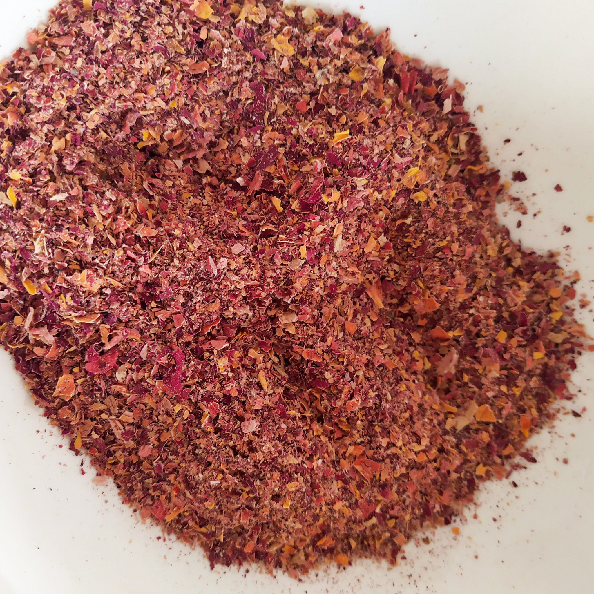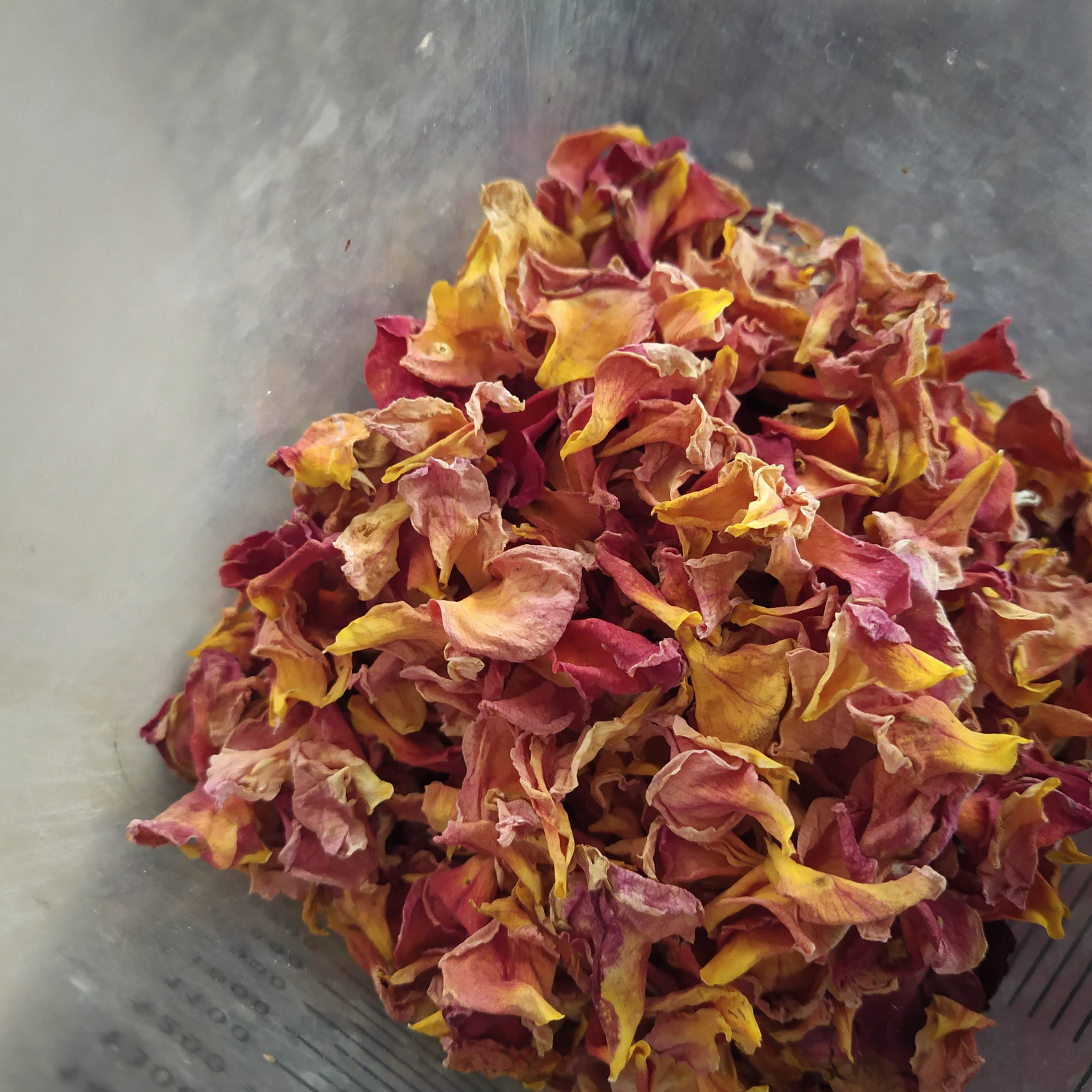 1 sklenici sušených růžových lístků – ideálně z aromatické růže