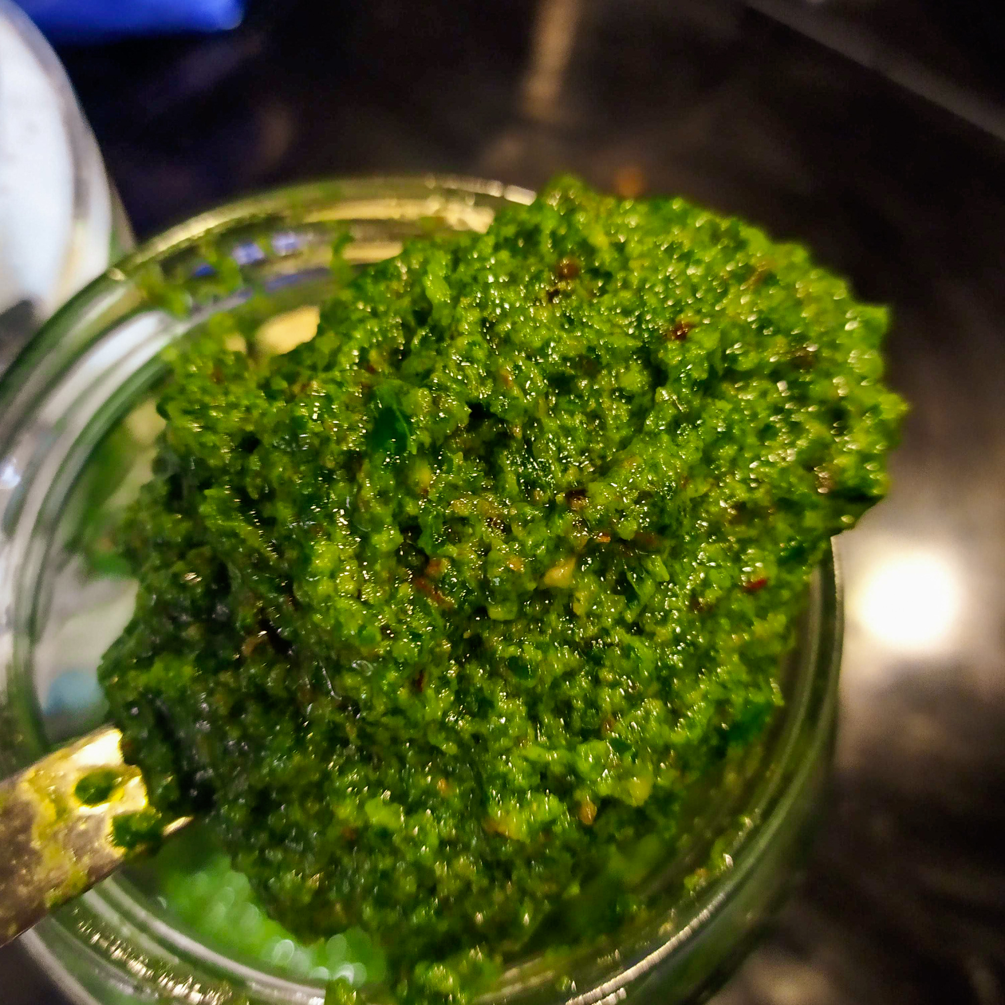 3. Jakmile máte pesto hotové, dejte ho do uzavíratelné skleničky a navrch ještě přelijte olejem, které udrží pesto déle čerstvé. Pesto uchovávejte v chladu, v ledničce vydrží zpravidla týden. Pokud už víte, že pesto do týdne nevyužijete, raději ho zamrazte v silikonové formě nebo v plastové misce. V tomto případě pesto na závěr olejem nepřelévejte.