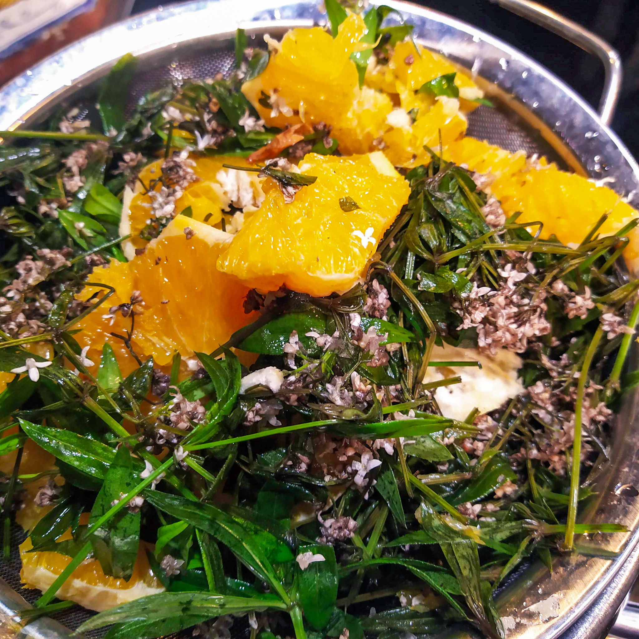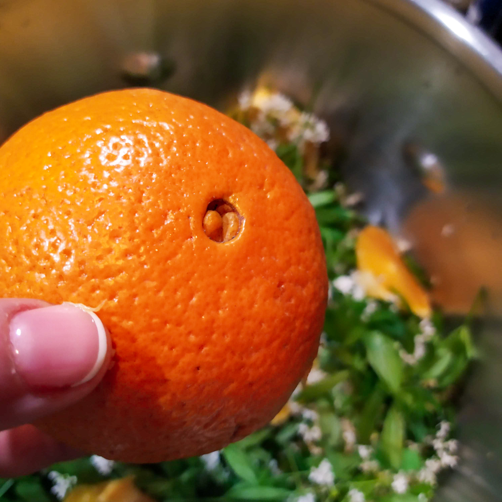 2 pomeranče – bez kůry, nakrájené na kolečka a zbavené peciček