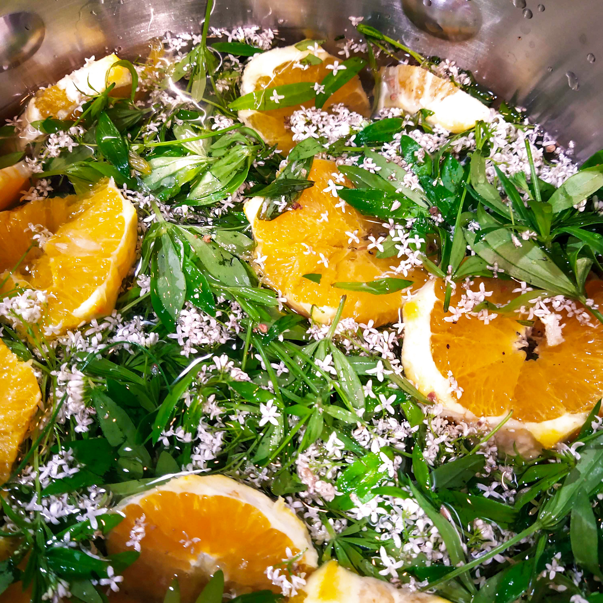 - Mářinku sbírejte po obědě. Ideálně kolem 12. až 13. hodiny. Někdo je před použitím omyje. Já mářinku pěstuji na zahradě ve stínu a na své zahradě nepoužívám chemii, a tak jen vždy nechám misku s bylinkami na 30 minut ve stínu, aby vylezli broučci. Večer zalijte bylinky vodou a přidejte nakrájené pomeranče a kardamom. Na hrnec dejte pokličku a nechte odpočívat 24 hodin na chladném místě. Pokud nemáte sklep, uložte na podlahu do koupelny.